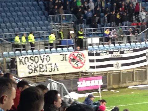 На утакмици у петак, 24.10 између Динама из Чешких Будејовица и Славије из Прага, било је у сектору навијача Динама, могуће видети заставе Србије и транспарент ”Косово је Србија” .