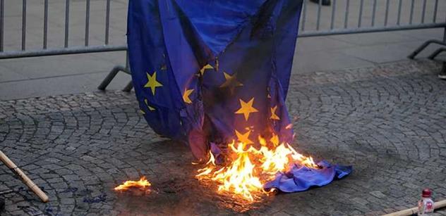 Јуче, 18. јула 2015 године, је у Чешкој, у Прагу, испред Канцеларије владе а у организацији политичке странке НЕ Бриселу – Народна демократија одржан протестни скуп током кога су запаљене заставе Европске уније.