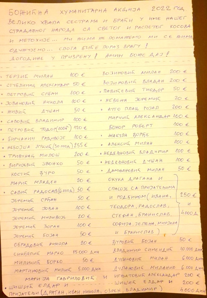 Захваљујемо се свим приложницима али и пријатељима са Косова и Метохије који нам помогли да успешно спроведемо ову добротворну акцију.