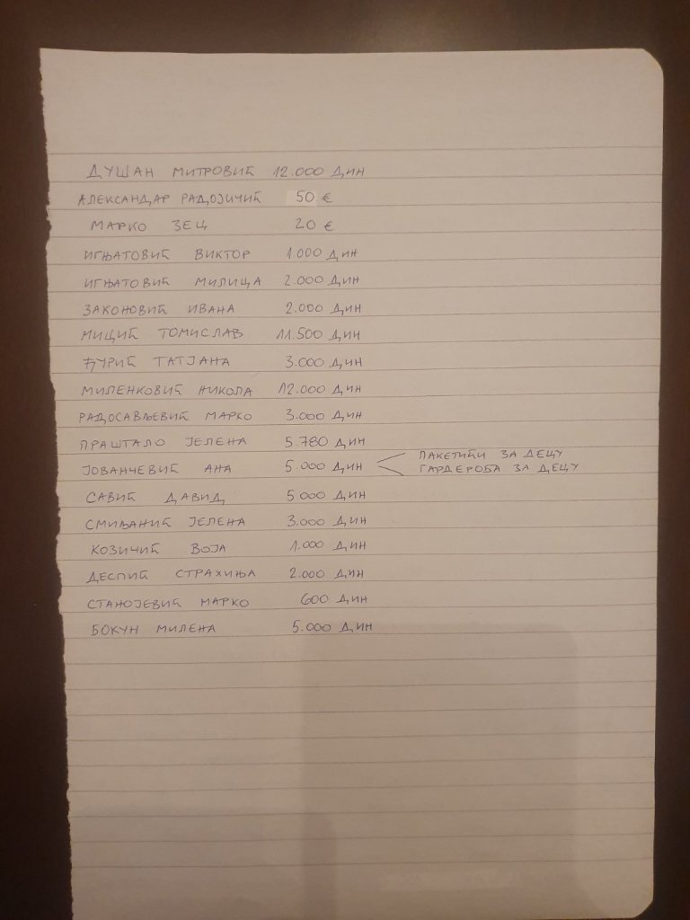 Посебну захвалност дугујемо Ненаду Јеремићу из Београда који је у кругу својих пријатеља прикупио око 5000 евра.