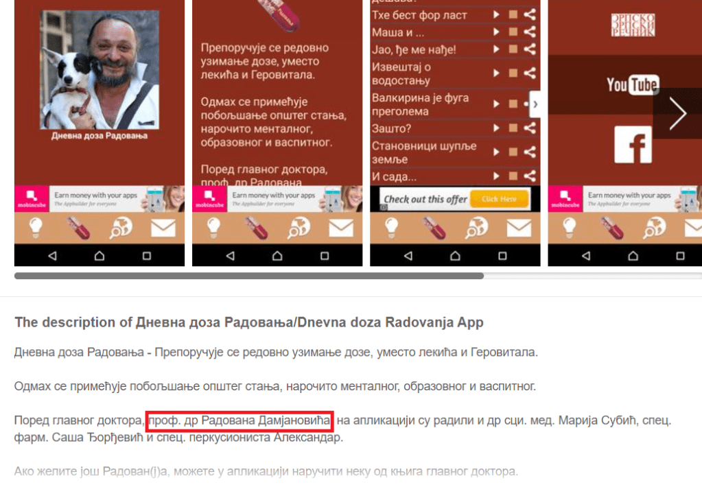Радован Дамјановић се најчешће лажно представља као професор док се на местима где може да се преузме његова апликација под називом ”Дневна доза Радовања” представља као ”проф. др Радован Дамјановић”.