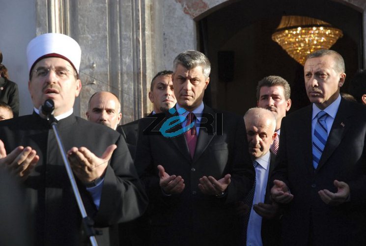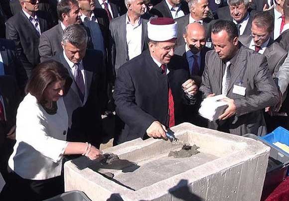 Камен темељац за ову џамију (фотографија испод) положили су премијер самопроглашене Републике Косово Хашим Тачи, председница Атифете Јахјага, председник Скупштине Јакуп Краснићи, председник Исламске заједнице Косова (КИБ) Наим Трнава и градоначелник Приштине Иса Мустафа. (5)