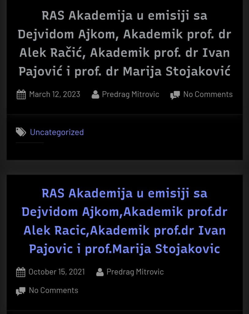 На интернет презентацији Развојне академије Срба можемо да пронађемо и следећу вест: “РАС академија у емисији са Дејвидом Ајком, Академик проф. др Алек Рачић, Академик проф. др Иван Пајовић и проф. др Марија Стојаковић”. Вест је објавио “академик” Предраг Митровић. За оне мање упућене подсетићемо да је Дејвид Ајк, између осталог, познат и по тврдњама да светом управљају рептили или сиви ванземаљци. Толико о (научној) вредности ових “академија”.