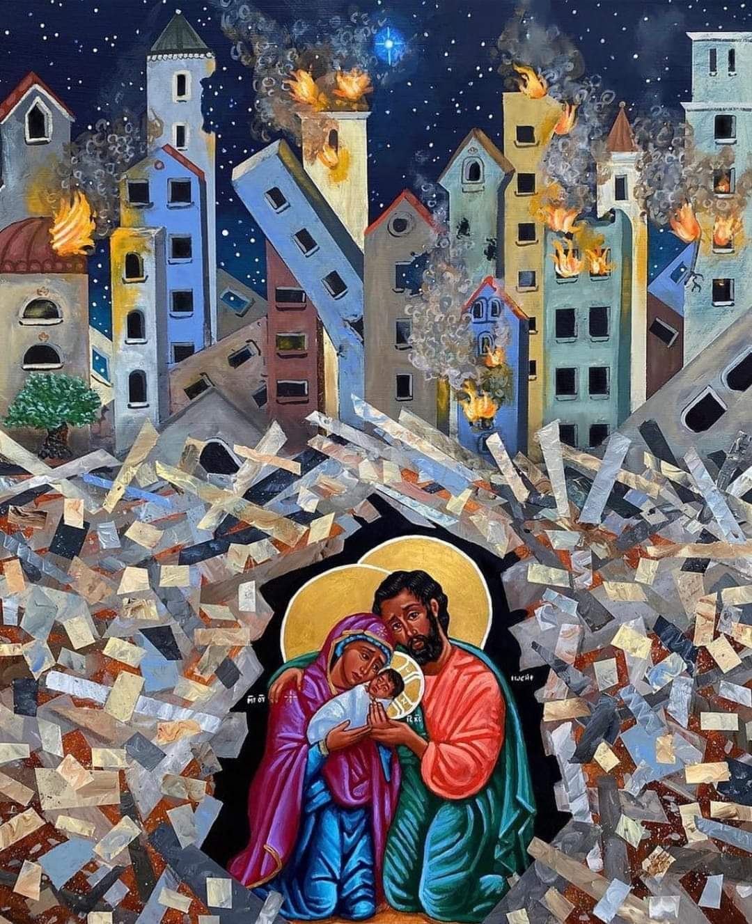 Међу религиозним сликама које су дељене појавила се и “икона” Свете породице. Иста “иконе” дели се у вези са ратним дејствима у Украјини и Светој Земљи.