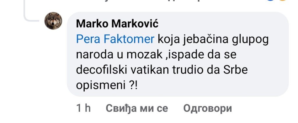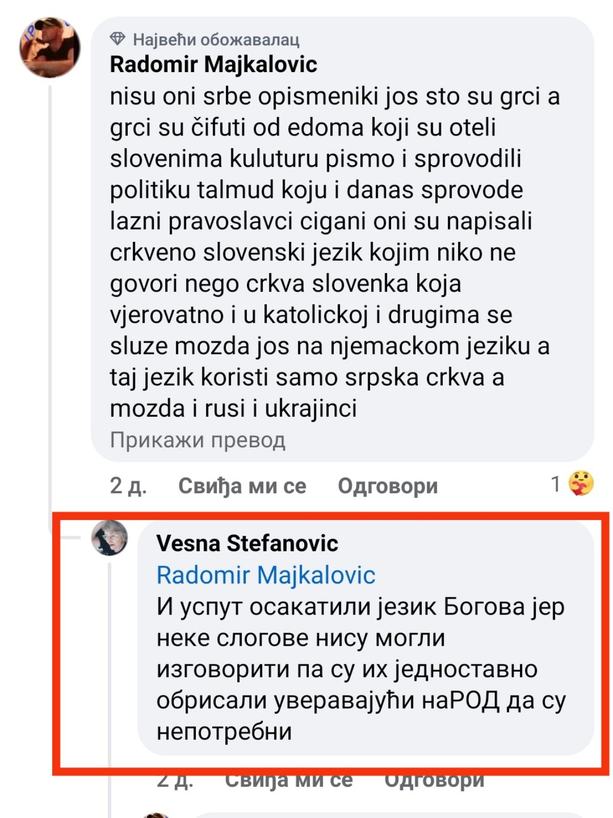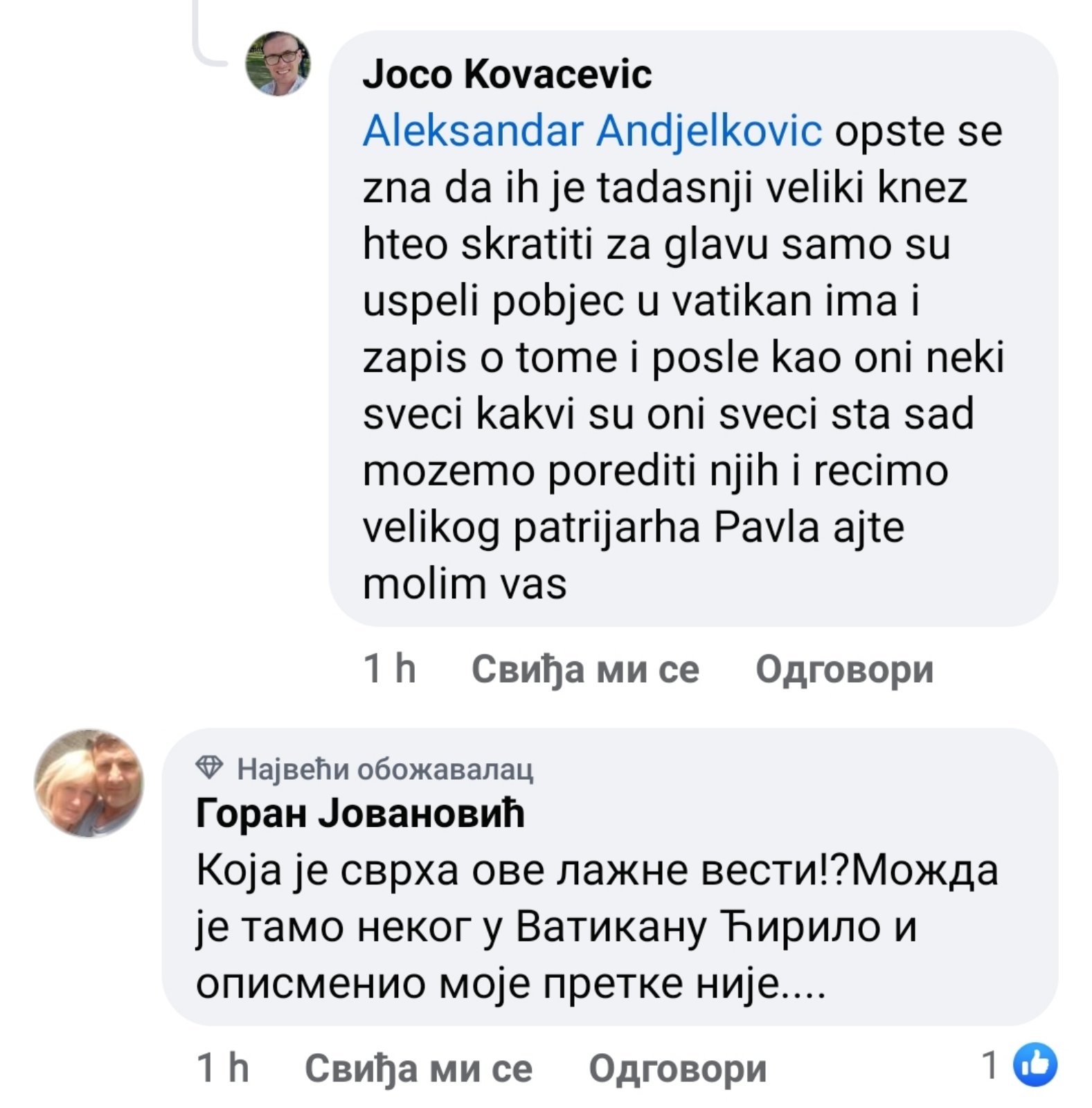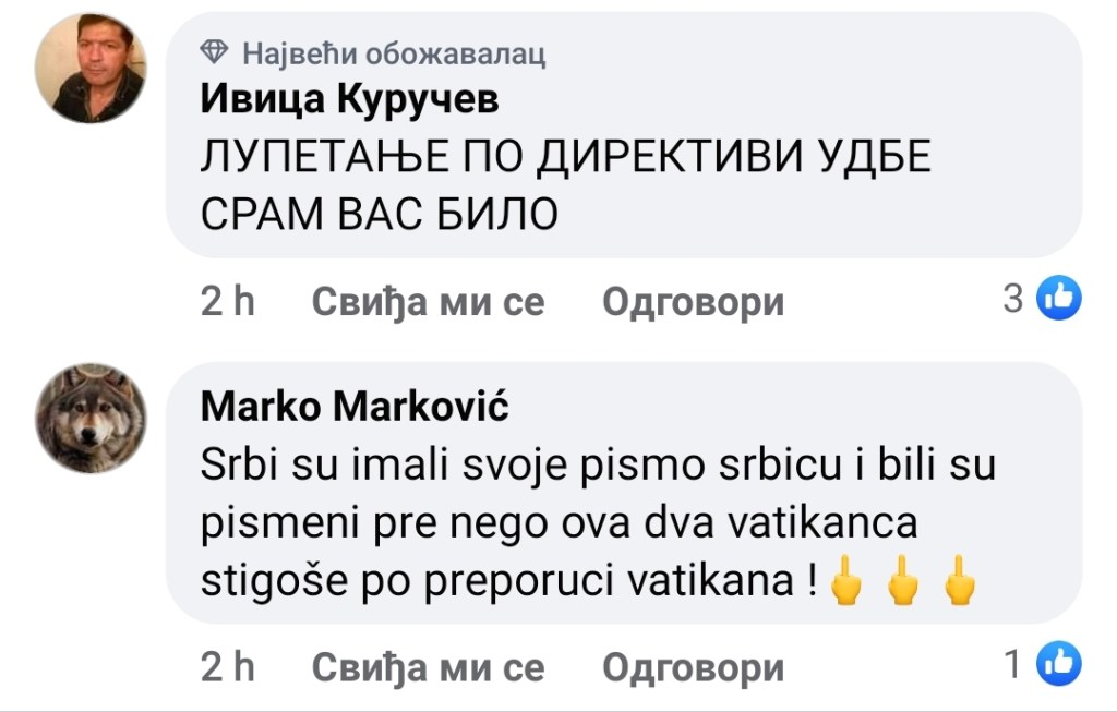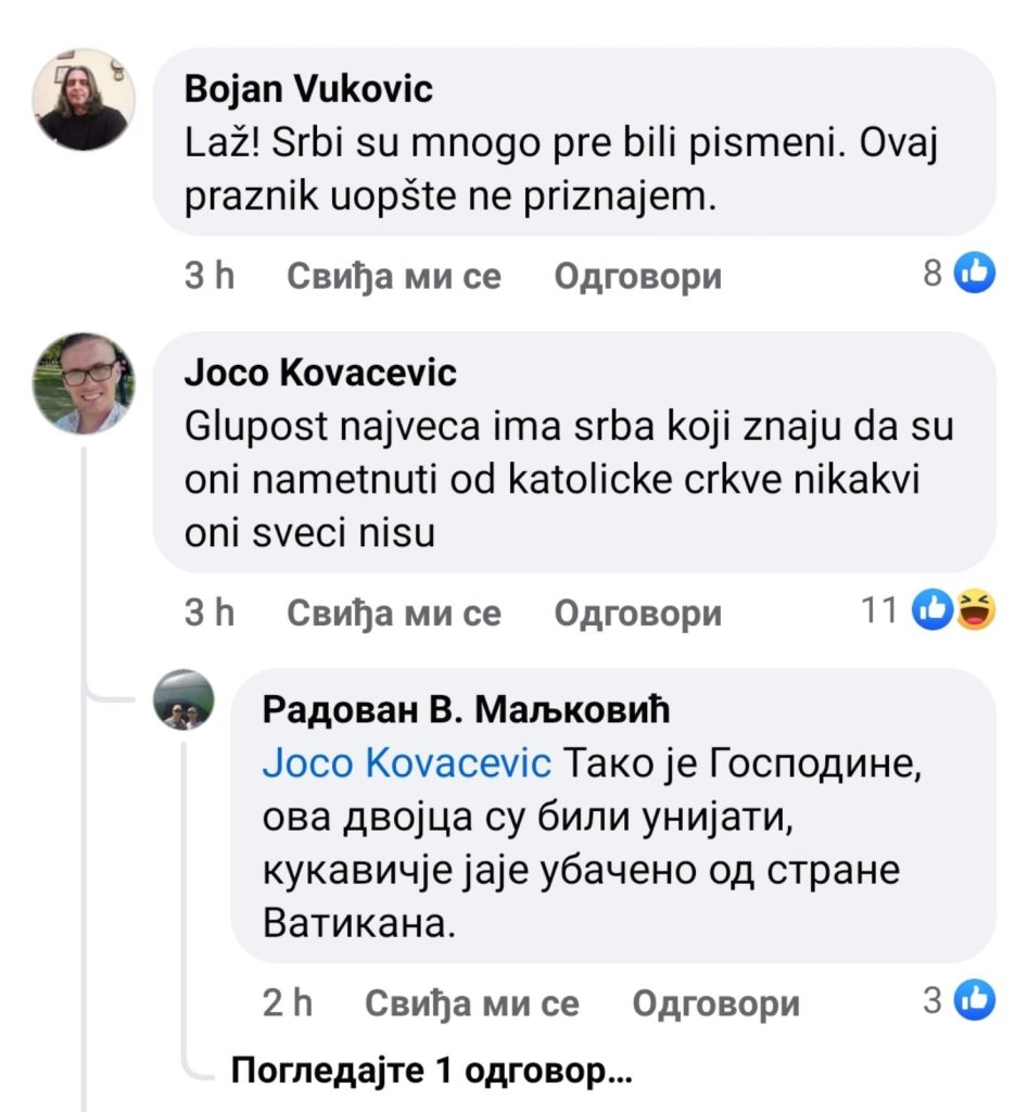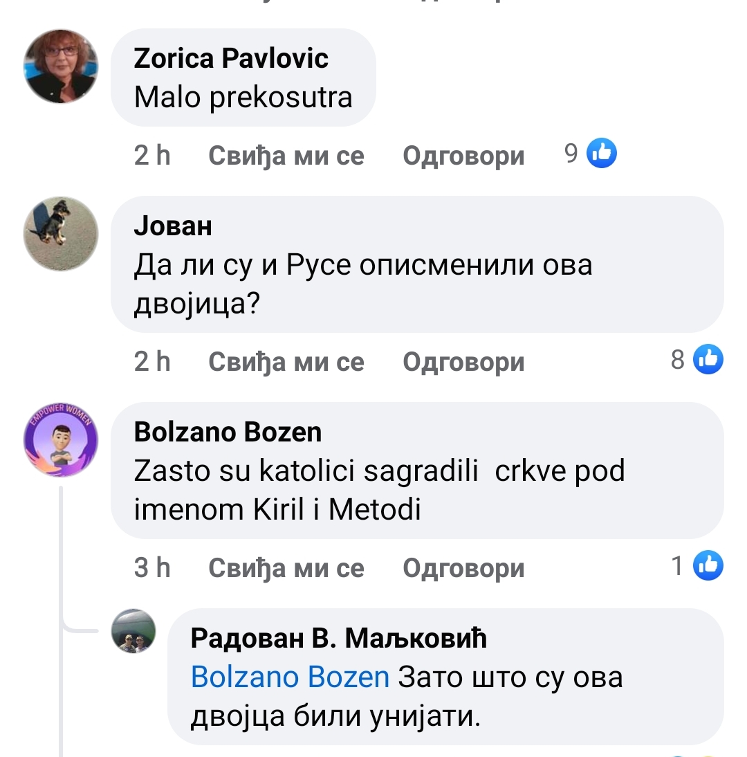 Ова објава изазвала је као 14. фебруара 2024. године (о чему смо писали ОВДЕ), на дан уснућа у Господу Светог Равноапостолног Кирила, Методијевог брата, лавину антихришћанских  коментара у којима су Свети Кирило и Методије етикеторани као педе.и (цензура је наша), чифути, ватиканци, унијати, кукавичје јаје убачено од стране Ватикана, грко-католички фанариоти и агенти који су крали србске књиге итд.