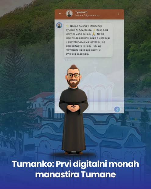 Штавише, у емисији на једној из телевизија са националном фреквенцијом у којој је гостовао Александар Николић, творац интелигентне машине којој је дато име Туманко, водитељи поменуту машину представљају као ,,првог дигиталног монаха на свету “. Дакле, овде се у лажи одлази и много даље и дигитална машина представља не само као човек и хришћанин, већ и као монах.