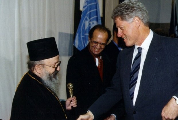Бивши епископ Артемије са Билом Клинтоном и Ибрахимом Руговом